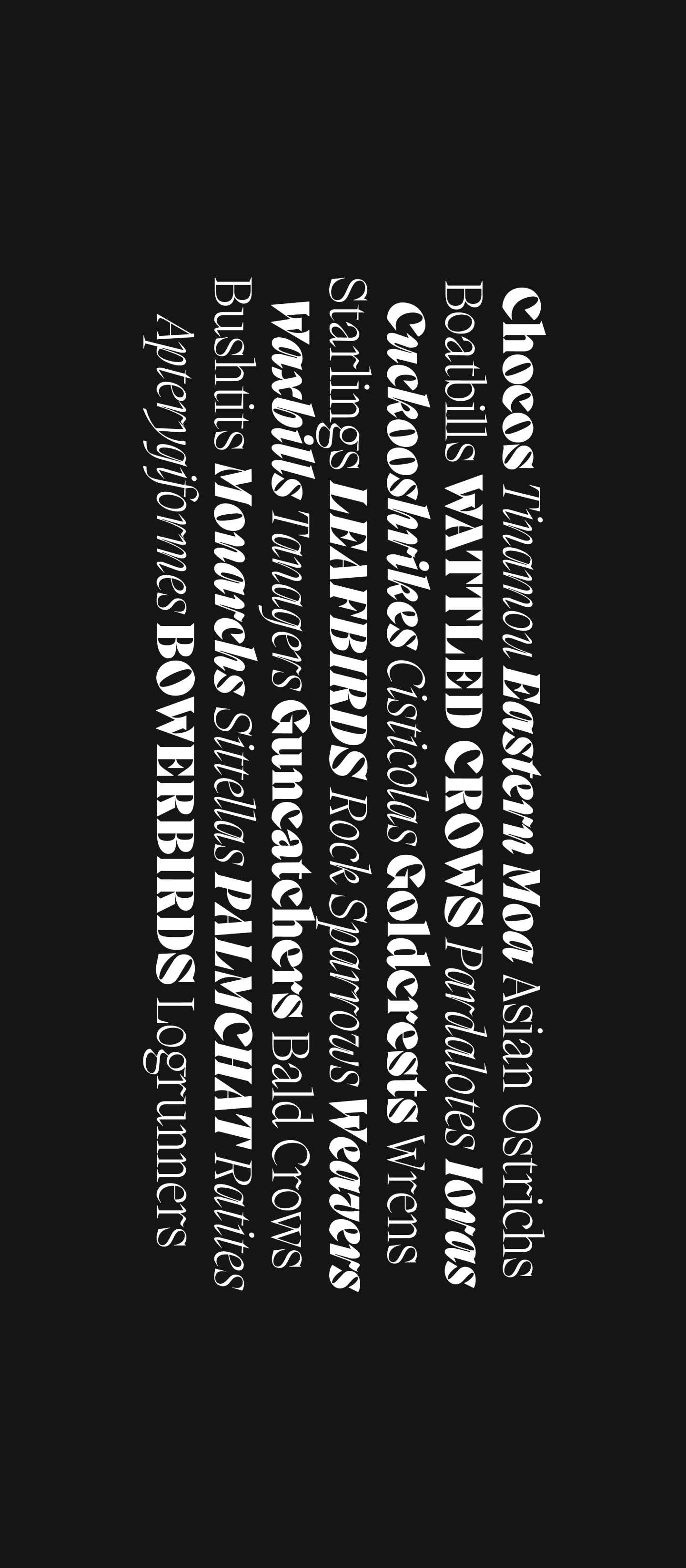 Migra is a spiky serif typeface inspired by the features in migratory birds