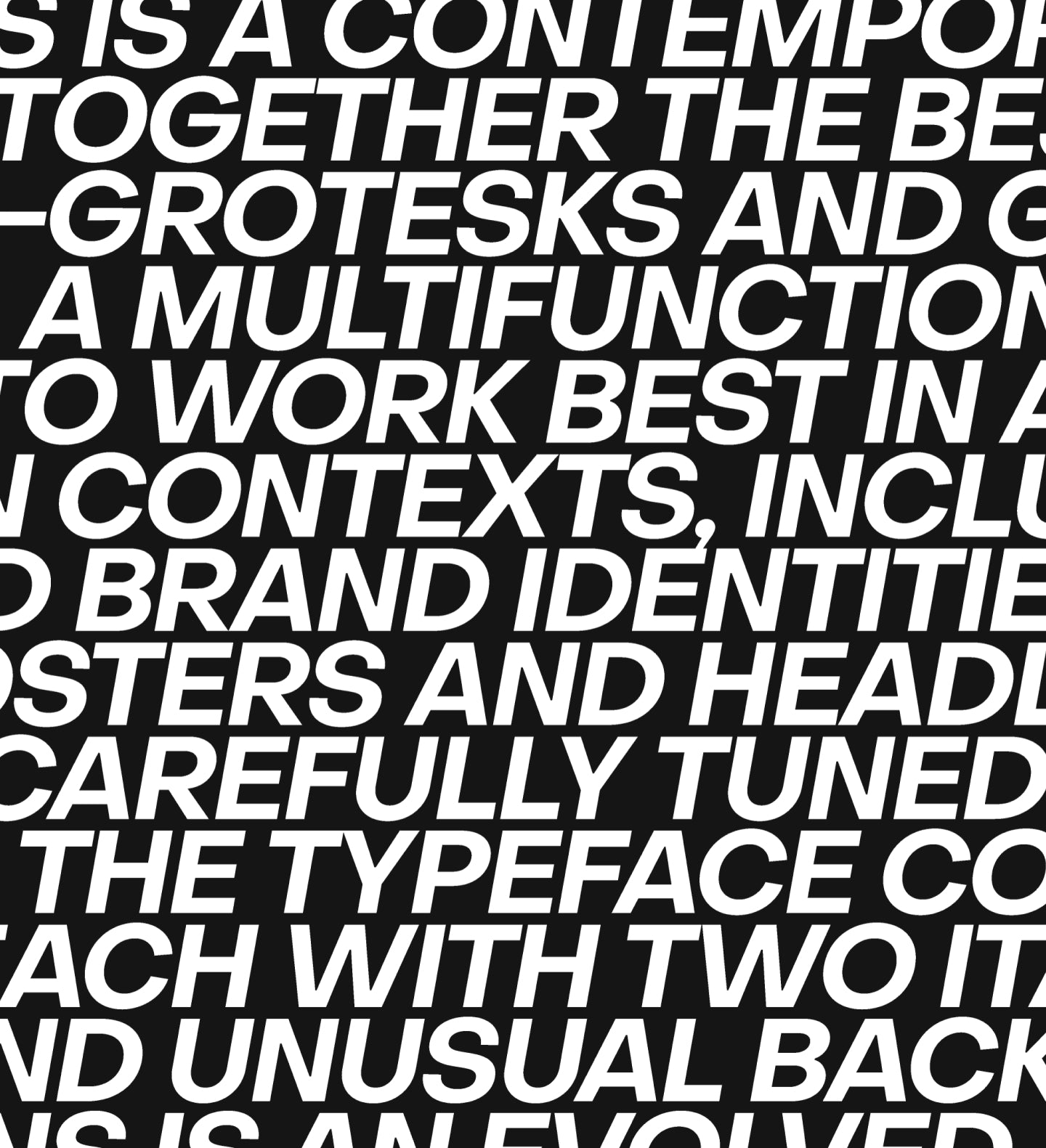 Object Sans is a contemporary type family that puts together the best qualities of Swiss neo-grotesks and geometric fonts. It’s a multifunctional workhorse designed to work best in → any printed and on-screen contexts, including logo design, brand identities, websites, packaging, posters and headlines; regular weight is carefully tuned for small sized body text.
